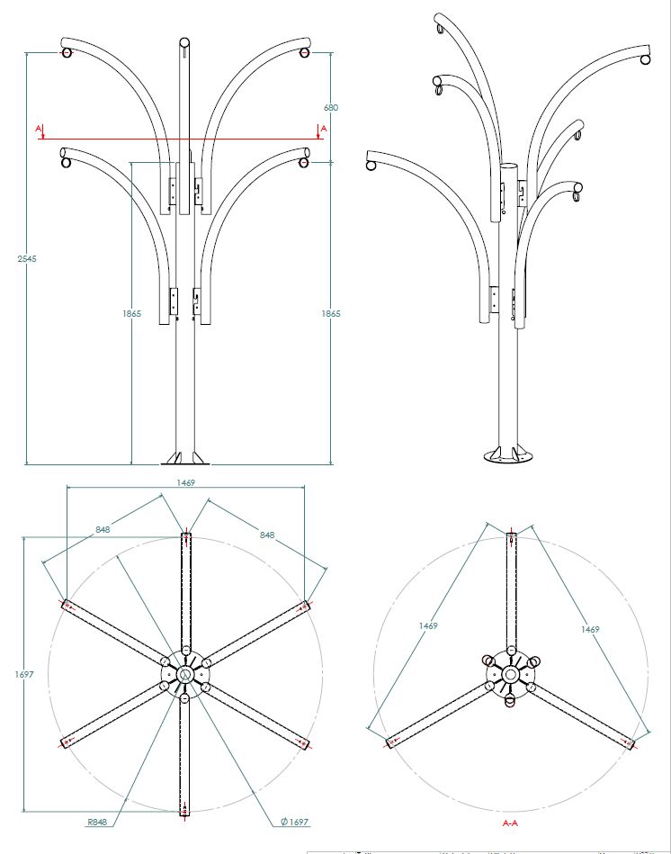 Mõõdud:  Läbimõõt 1,7m täiskõrgus 2,6m